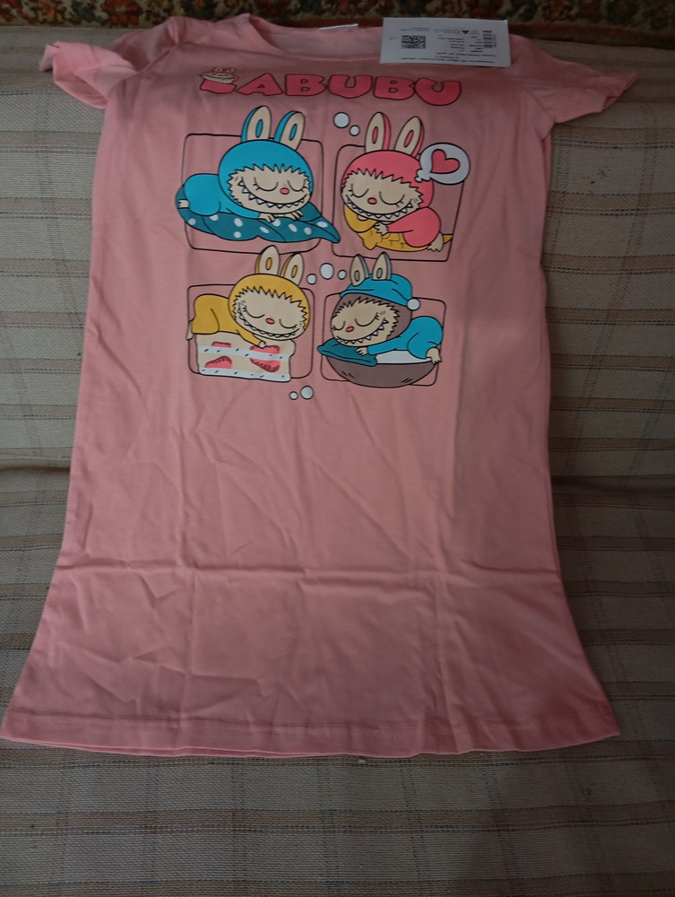 Яркий принт с Лабубу придаёт изделию индивидуальность, а стойкий рисунок сохраняет насыщенные краски даже после многократных стирок. Это платье-сорочка станет любимой вещью для девочки: в ней удобно спать, играть и проводить время дома.